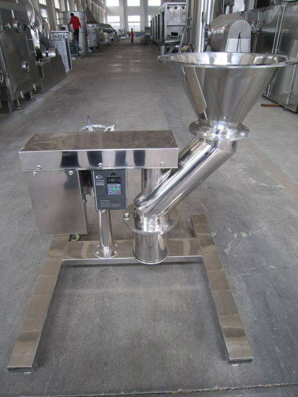 KZL系列快速整粒(粉碎)機在制藥、化工、食品工業廣泛應用,效果良好。該機有設計合理的濾網、桿件、能粉碎大塊易碎的物料,并根據離心力原理,用特殊孔的濾網,仔細篩濾,專用摩擦濾網桿件能軋碎篩濾堅固的粒子,同時磨碎大塊聚物。