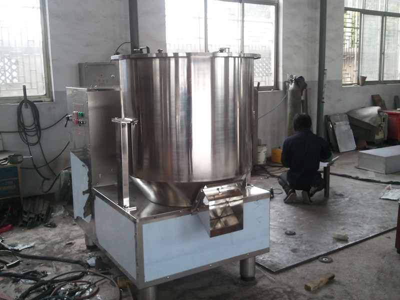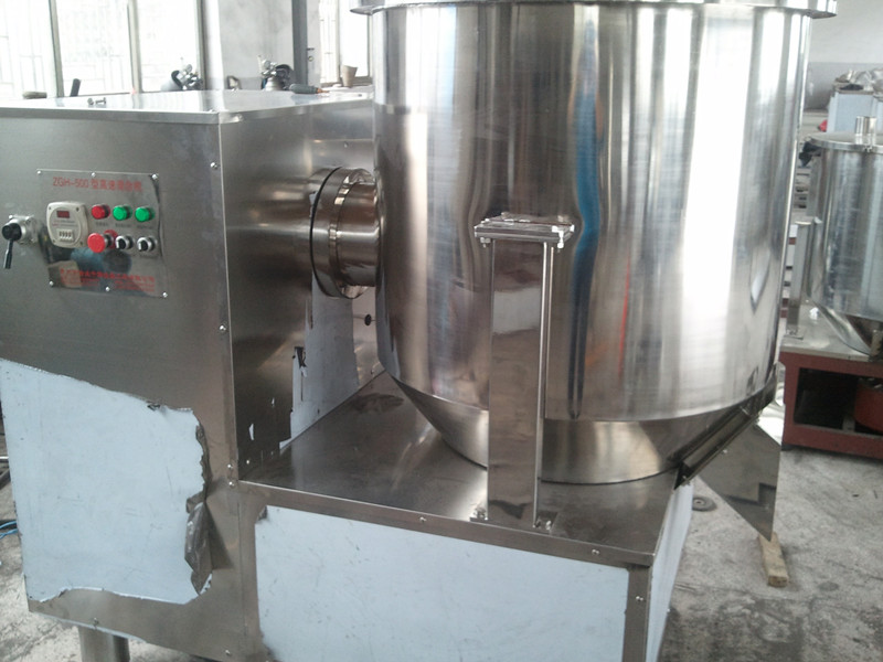 粉體物料與粘合劑在圓筒形容器中由底部混合漿充分混合成濕潤軟材,然后由側置的高速粉碎槳切割成均勻的濕顆粒。