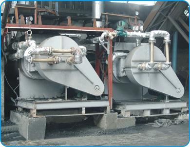 采用蒸汽或導熱油作熱交換的熱源,熱載體(蒸汽或導熱油)的溫度為180-230℃,熱載體被分別引入中空的干燥設備殼體和傳動的軸、漿葉等所有與污泥接觸進行熱交換的加熱金屬表面。